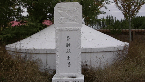 麥新(1914—1947),上海人。1931年投身革命,1937年創(chuàng)作了著名的抗戰(zhàn)歌曲《大刀進行曲》,1938年加入中國共產(chǎn)黨。1946年2月,他從延安奉派來開魯縣工作,任縣委秘書兼縣委機關(guān)黨支部書記、宣傳部長兼城關(guān)區(qū)委書記等職。1947年6月6日,麥新在縣委開完會返回五區(qū)的途中,在劉祥營子南蘆家段附近突遭土匪襲擊,為救護群眾的1輛生產(chǎn)大車,命令1名通訊員帶著黨的文件火速轉(zhuǎn)移,他和另外1名通訊員與土匪周旋。因寡不敵眾,麥新身負(fù)重傷,在子彈打光的情況下,身中4彈落馬犧牲,時年33歲。