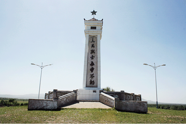 烈士紀(jì)念碑分為三層,碑身呈四棱柱,高10.5米。碑座為正方形,邊長(zhǎng)2.7米,高1.3米。碑基為正六邊形,邊長(zhǎng)5.2米,高1.2米。碑身書(shū)寫(xiě)“人民烈士永垂不朽”。碑下埋葬著在抗日戰(zhàn)爭(zhēng)中英勇?tīng)奚牧沂窟z骸。烈士紀(jì)念碑1956年由原豐鎮(zhèn)縣人民政府修建,之后,鄉(xiāng)政府又多次修繕。