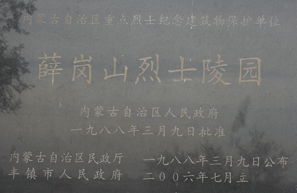 1988年3月9日,薛崗山烈士陵園被內(nèi)蒙古自治區(qū)人民政府公布為重點(diǎn)革命烈士紀(jì)念建筑物保護(hù)單位;1995年10月,被中共豐鎮(zhèn)市委公布為愛(ài)國(guó)主義教育基地。