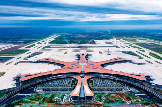日的北京大興國際機場。大興國際機場是首都重大標志性工程,其航站樓是目前全球最大規(guī)模的單體航站樓,以其獨特的造型設(shè)計、精湛的施工工藝、便捷的交通組織、先進的技術(shù)應(yīng)用,創(chuàng)造了許多世界之最。