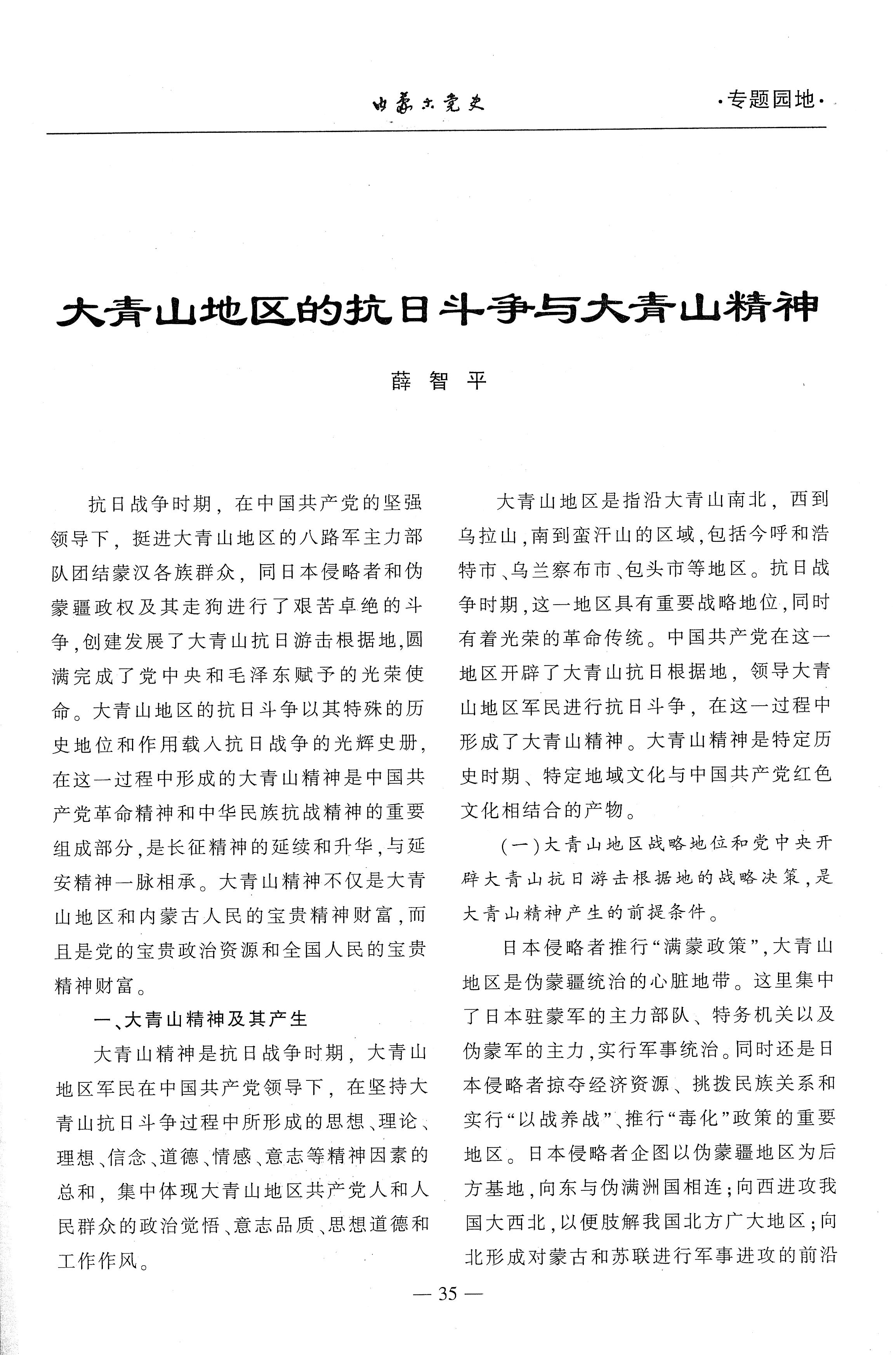 大青山地區(qū)的抗日斗爭(zhēng)與大青山精神