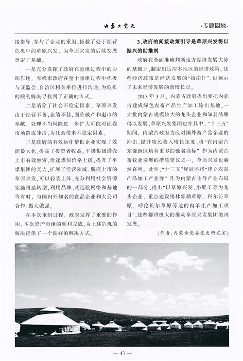 政府在草原興發(fā)集團(tuán)創(chuàng)建和發(fā)展中發(fā)揮作用的研究