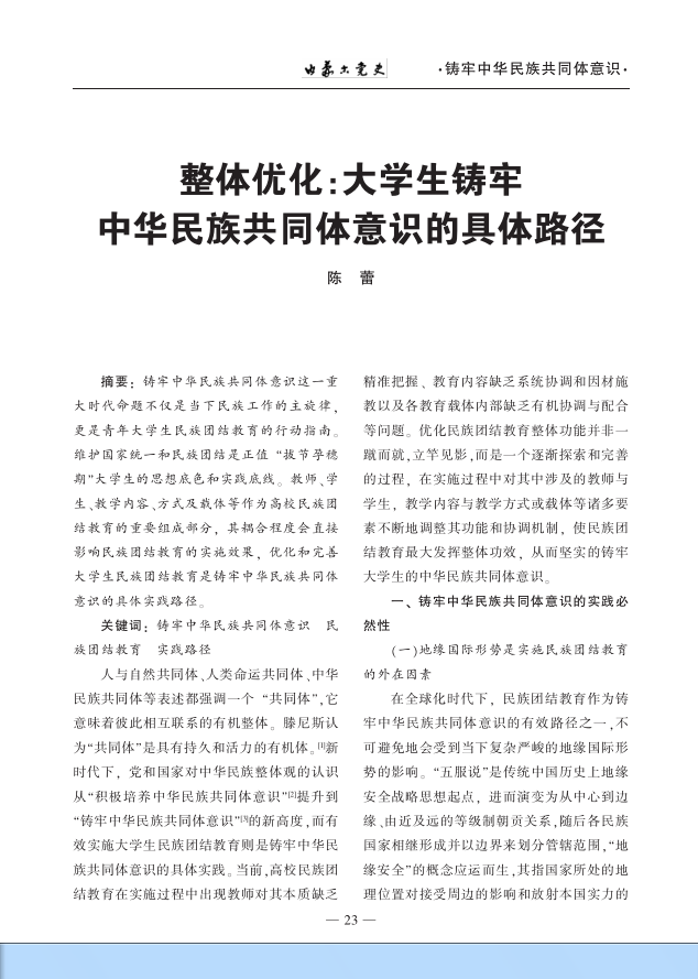 整體優(yōu)化:大學(xué)生鑄牢中華民族共同體意識(shí)的具體路徑
