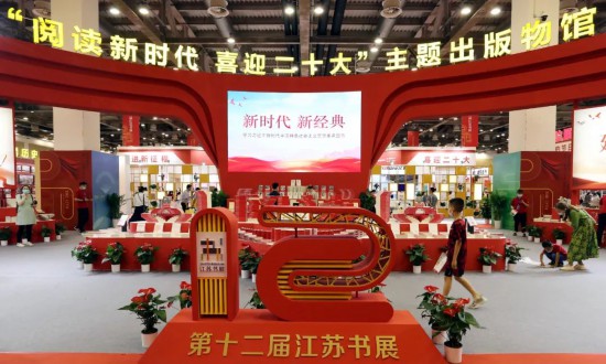 7月2日,第十二屆江蘇書(shū)展在蘇州國(guó)際博覽中心開(kāi)幕。圖為書(shū)展主題出版物展區(qū)。人民圖片/供圖