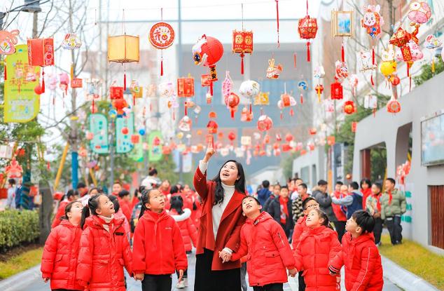 浙江省湖州市長興縣實驗小學校園里高掛著學生們自制的各種燈籠,喜迎開學好時光。