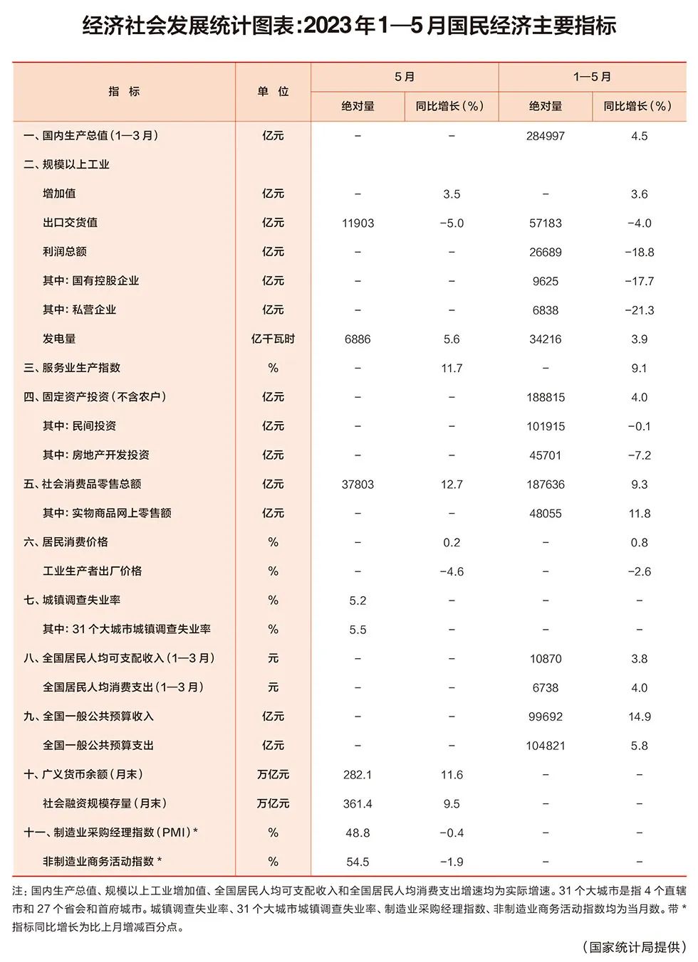經(jīng)濟社會發(fā)展統(tǒng)計圖表:2023年1—5月國民經(jīng)濟主要指標