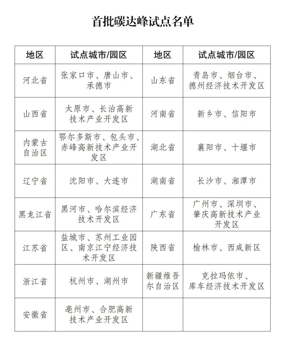 國家發(fā)展改革委發(fā)布首批碳達(dá)峰試點(diǎn)名單