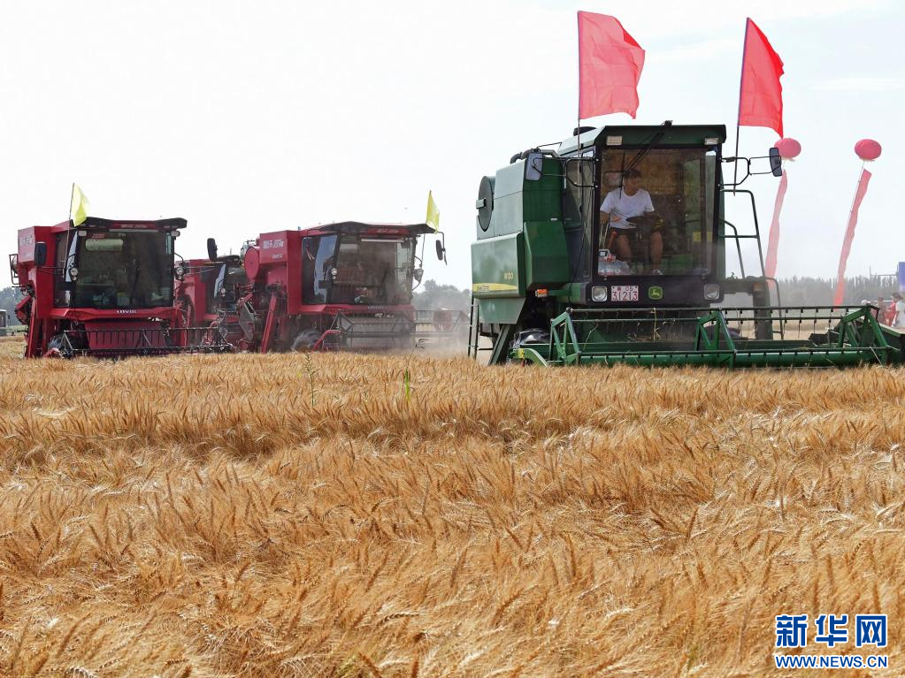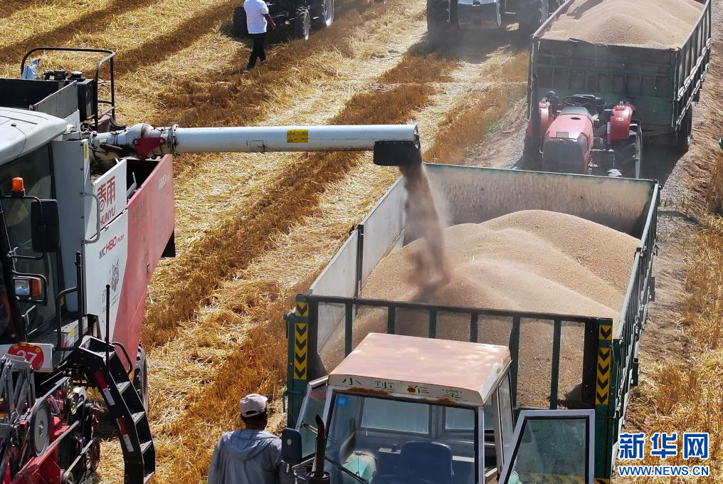 7月23日,內(nèi)蒙古巴彥淖爾市臨河區(qū)農(nóng)戶收獲小麥。新華社記者李云平 攝