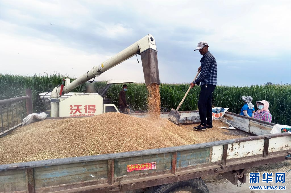 7月20日,內(nèi)蒙古巴彥淖爾市臨河區(qū)農(nóng)戶收獲小麥。新華社記者李云平 攝