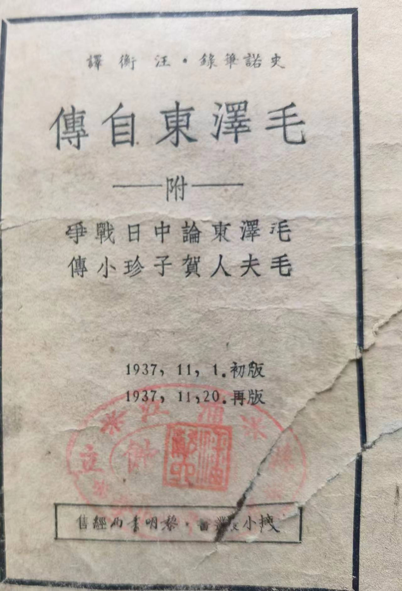 (徐漢松同志捐贈的《毛澤東自傳》書影)