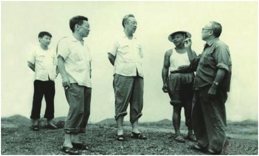 1978年8月,習仲勛(左三)在廣東惠陽農村調研。在清華大學學習的習近平(左一)利用暑假時間參加社會實踐,隨同父親一起下鄉(xiāng)