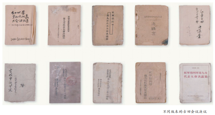 黨對(duì)軍隊(duì)的絕對(duì)領(lǐng)導(dǎo),是人民軍隊(duì)永遠(yuǎn)不變的軍魂。這一根本原則和制度,發(fā)端于南昌起義,奠基于三灣改編,定型于古田會(huì)議,是人民軍隊(duì)完全區(qū)別于一切舊軍隊(duì)的政治特質(zhì)和根本優(yōu)勢(shì)。在中國(guó)人民革命軍事博物館的展柜中,整齊地陳列著封面設(shè)計(jì)各異、不同時(shí)間出版的共10本古田會(huì)議決議。如今,在當(dāng)年毛澤東作政治報(bào)告的廳堂里,富有鮮明戰(zhàn)斗性的標(biāo)語(yǔ)和會(huì)議代表取暖留下的斑斑炭火印跡依然清晰可見(jiàn),古田會(huì)議會(huì)址后山上“古田會(huì)議永放光芒”8?jìng)€(gè)大字始終熠熠生輝。 1929年春,紅4軍出擊贛南、閩西后,紅4軍黨內(nèi)特別是領(lǐng)導(dǎo)層內(nèi)在軍隊(duì)建設(shè)問(wèn)題上產(chǎn)生了一些不同看法,軍內(nèi)存在的單純軍事觀點(diǎn)、流寇思想和軍閥主義殘余等非無(wú)產(chǎn)階級(jí)思想有所發(fā)展,影響了部隊(duì)的戰(zhàn)斗力。毛澤東始終堅(jiān)決主張加強(qiáng)黨對(duì)軍隊(duì)的領(lǐng)導(dǎo),加強(qiáng)部隊(duì)的政治工作,實(shí)行民主集中制,深入發(fā)動(dòng)群眾創(chuàng)建農(nóng)村根據(jù)地。但6月22日的中共紅4軍第七次代表大會(huì),否定了毛澤東的正確主張并未經(jīng)中共中央許可改選了前委,陳毅當(dāng)選為前委書(shū)記,中央指定的前委書(shū)記毛澤東落選。會(huì)后,毛澤東離開(kāi)紅4軍領(lǐng)導(dǎo)崗位,去閩西協(xié)助指導(dǎo)地方工作。 7月,陳毅向中共中央報(bào)告了會(huì)議的情況與決議,8月又親赴上海向中央?yún)R報(bào)和請(qǐng)示,前委書(shū)記由朱德代理。中共中央收到紅4軍“七大”的決議和陳毅的報(bào)告后,于8月13日召開(kāi)政治局會(huì)議進(jìn)行討論。周恩來(lái)根據(jù)討論的精神,代表中央于8月21日起草了給紅四軍前委的指示信,即“八月來(lái)信”。8月下旬,中共中央政治局聽(tīng)取陳毅的匯報(bào)后,決定再次致信紅4軍前委以統(tǒng)一認(rèn)識(shí),并指定陳毅代中央起草,由周恩來(lái)最后審定。此信即9月28日的《中共中央給紅軍第四軍前委的指示信》,史稱(chēng)“九月來(lái)信”,對(duì)紅4軍黨內(nèi)發(fā)生的爭(zhēng)論問(wèn)題作出了明確結(jié)論,要求紅4軍前委和全體干部戰(zhàn)士維護(hù)朱德、毛澤東的領(lǐng)導(dǎo),毛澤東“應(yīng)仍為前委書(shū)記”。10月底,陳毅帶著中共中央的“九月來(lái)信”回到紅4軍,向前委傳達(dá)了中央的指示精神,并派人請(qǐng)毛澤東回前委工作。11月26日,毛澤東偕中共福建省委巡視員、組織部長(zhǎng)謝漢秋從上杭縣蛟洋鎮(zhèn)抵達(dá)長(zhǎng)汀縣,同朱德、陳毅會(huì)合,表示遵照中央指示回前委工作。28日,毛澤東主持召開(kāi)中共紅4軍前委擴(kuò)大會(huì)議,會(huì)議決定紅4軍進(jìn)行整訓(xùn),還規(guī)定12月份的工作主要是召開(kāi)中共紅4軍第九次代表大會(huì),建立紅4軍的政治領(lǐng)導(dǎo),糾正紅4軍黨內(nèi)各種錯(cuò)誤傾向。同日,毛澤東復(fù)信中共中央,報(bào)告自己回紅4軍的情況和目前的工作計(jì)劃。12月28日至29日,中共紅4軍第九次代表大會(huì)在閩西上杭古田召開(kāi),即古田會(huì)議。會(huì)上,毛澤東作政治報(bào)告,朱德作軍事報(bào)告,陳毅傳達(dá)中央“九月來(lái)信”以及中央關(guān)于開(kāi)除陳獨(dú)秀等黨籍的決議案。會(huì)議根據(jù)中共中央的指示,選舉產(chǎn)生了新的中共紅4軍前敵委員會(huì),毛澤東當(dāng)選為書(shū)記。會(huì)議還一致通過(guò)了毛澤東親自主持起草的《中國(guó)共產(chǎn)黨紅軍第四軍第九次代表大會(huì)決議案》,即古田會(huì)議決議。決議包括糾正黨內(nèi)的錯(cuò)誤思想、黨的組織問(wèn)題、黨內(nèi)教育問(wèn)題、紅軍宣傳工作問(wèn)題、士兵政治訓(xùn)練問(wèn)題、廢止肉刑問(wèn)題、優(yōu)待傷病兵問(wèn)題、紅軍軍事系統(tǒng)與政治系統(tǒng)關(guān)系問(wèn)題等內(nèi)容。古田會(huì)議確立了思想建黨、政治建軍原則。 在黨的建設(shè)方面,決議強(qiáng)調(diào)了加強(qiáng)黨的思想建設(shè)的重要性,指明了黨內(nèi)各種非無(wú)產(chǎn)階級(jí)思想的表現(xiàn)、來(lái)源及糾正辦法,提出“從教育上提高黨內(nèi)的政治水平,肅清單純軍事觀點(diǎn)的理論根源,……同時(shí),還要肅清機(jī)會(huì)主義和盲動(dòng)主義的殘余,打破四軍本位主義”“從理論上鏟除極端民主化的根苗”。決議還提出了加強(qiáng)黨的組織建設(shè)的任務(wù),要求“黨對(duì)軍事工作部分要有積極的注意和討論,一切工作在黨的討論和決議之后,再經(jīng)過(guò)群眾路線去執(zhí)行”“每連建設(shè)一個(gè)支部,每班建設(shè)一個(gè)小組,這是紅軍中黨的組織的重要原則之一”“厲行集中指導(dǎo)下的民主生活”,指出以后發(fā)展新黨員要注重質(zhì)量。 在軍隊(duì)建設(shè)方面,決議規(guī)定中國(guó)的紅軍“是一個(gè)執(zhí)行革命的政治任務(wù)的武裝集團(tuán)”,必須絕對(duì)服從黨的領(lǐng)導(dǎo),必須全心全意為著黨的綱領(lǐng)、路線和政策而奮斗;批評(píng)了那種認(rèn)為軍事和政治是對(duì)立的單純軍事觀點(diǎn),再次提出紅軍必須擔(dān)負(fù)起打仗、籌款和做