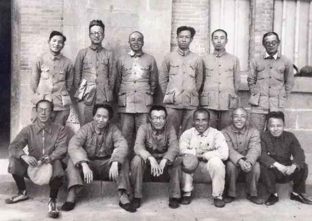 中共六屆六中全會主席團(tuán)成員合影。前排左起:康生、毛澤東、王稼祥、朱德、項(xiàng)英、王明;后排左起:陳云、博古、彭德懷、劉少奇、周恩來、張聞天。
