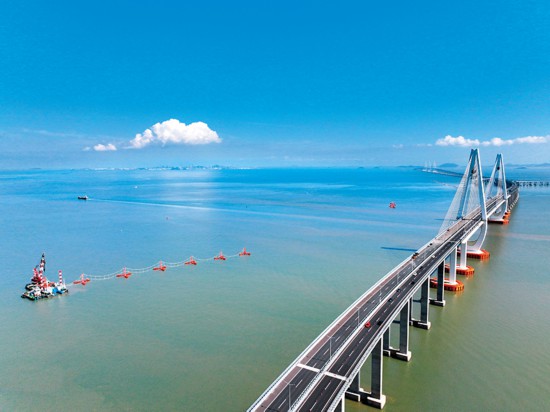 安裝防船舶撞擊系統(tǒng),筑起安全屏障(2023 年 9 月 10 日攝)姚峰攝/本刊
