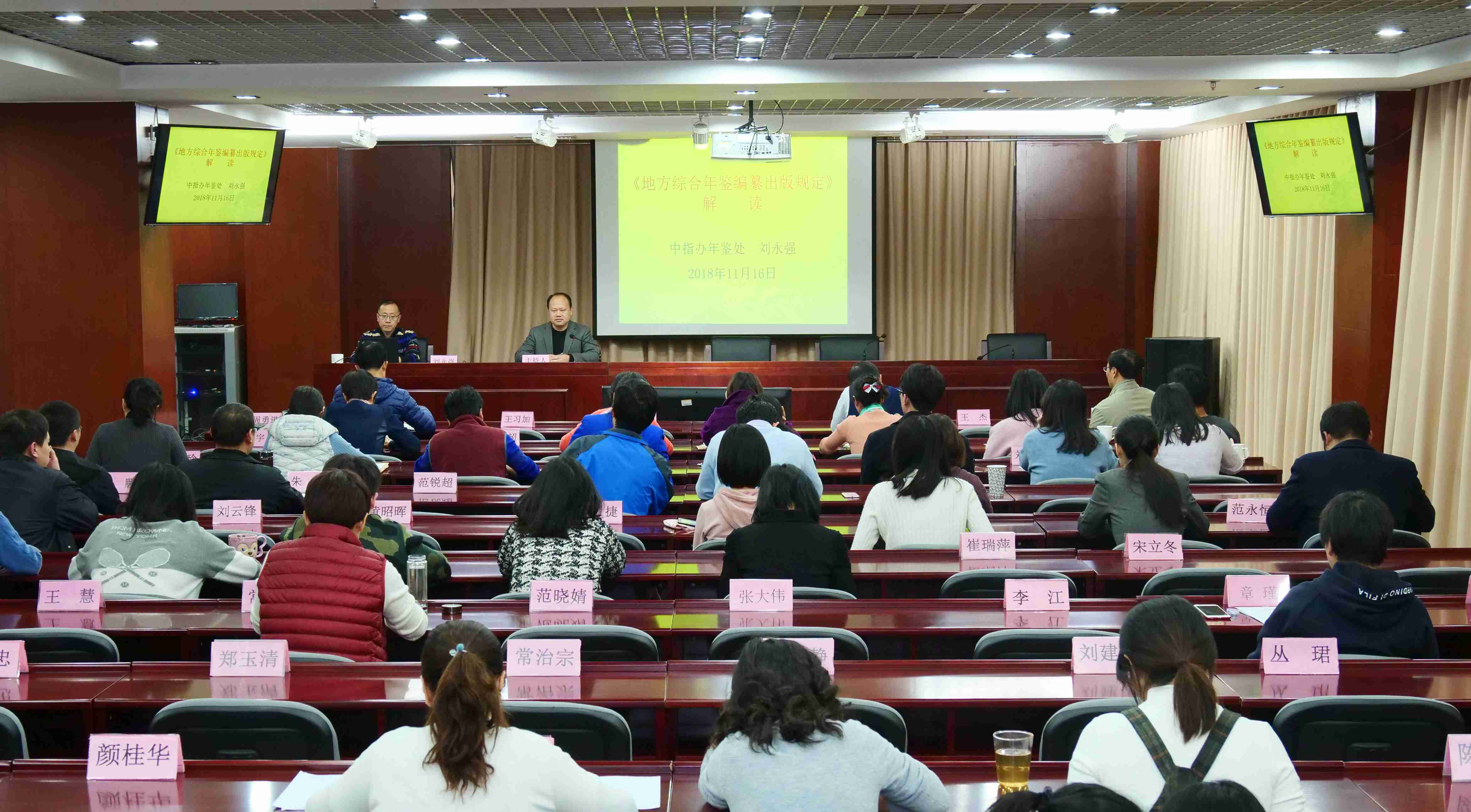 2018年11月16日下午,由中國(guó)地方志指導(dǎo)小組辦公室(以下簡(jiǎn)稱(chēng)中指辦)主辦的“方志大講堂”第十九講在國(guó)家方志館一樓學(xué)術(shù)報(bào)告廳舉行。中指辦年鑒處處長(zhǎng)、副研究員劉永強(qiáng)主講,講座題目為“《地方綜合年鑒編纂出版規(guī)定》解讀”,中指辦科研處副處長(zhǎng)、副研究員周勇進(jìn)主持講座并點(diǎn)評(píng)。