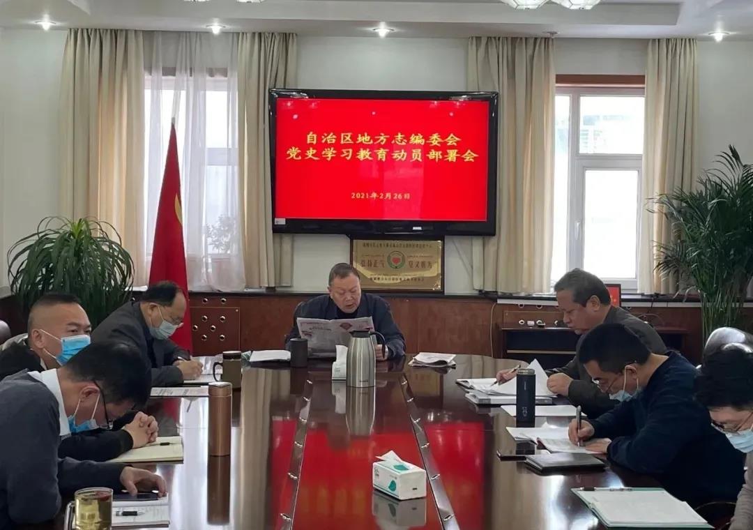 2月26日,新疆維吾爾自治區(qū)地方志編委會召開黨史學(xué)習(xí)教育動員會。編委會黨組書記、副主任廖運建作動員講話,黨組成員、副主任吐爾地·阿西木主持,一級巡視員劉星及編委會全體黨員干部參加會議。會議強調(diào),地方志工作者要牢固樹立正確的黨史觀,堅決抵制歪曲和丑化黨的歷史的錯誤傾向。通過修史編鑒,引導(dǎo)干部群眾樹立正確的歷史觀、民族觀、國家觀、文化觀。要完整準(zhǔn)確貫徹新時代黨的治疆方略,特別是要積極開展“文化潤疆”工程,為鑄牢中華民族共同體意識、促進各族人民大團結(jié)貢獻(xiàn)方志人的智慧和力量。