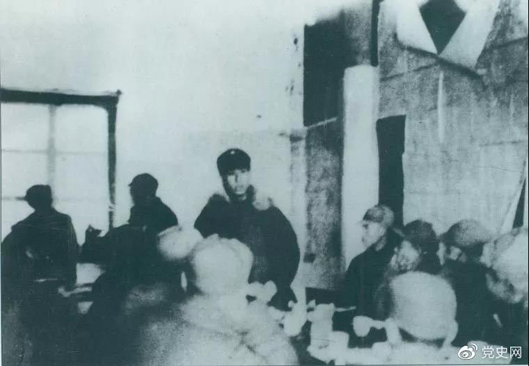 1941年1月20日,黨中央軍委命令重建新四軍軍部。圖為劉少奇向新四軍新建軍部的干部作報(bào)告。