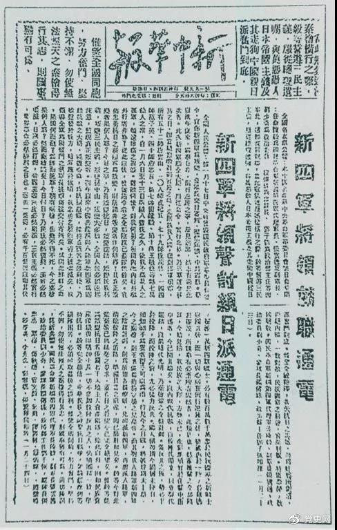 1941年1月23日《新中華報(bào)》載新四軍將領(lǐng)就職通電和聲討親日派通電。