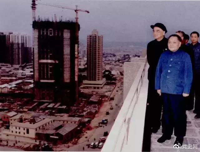 1984年1月24日,鄧小平在深圳國商大廈樓頂俯瞰建設中的深圳全貌。