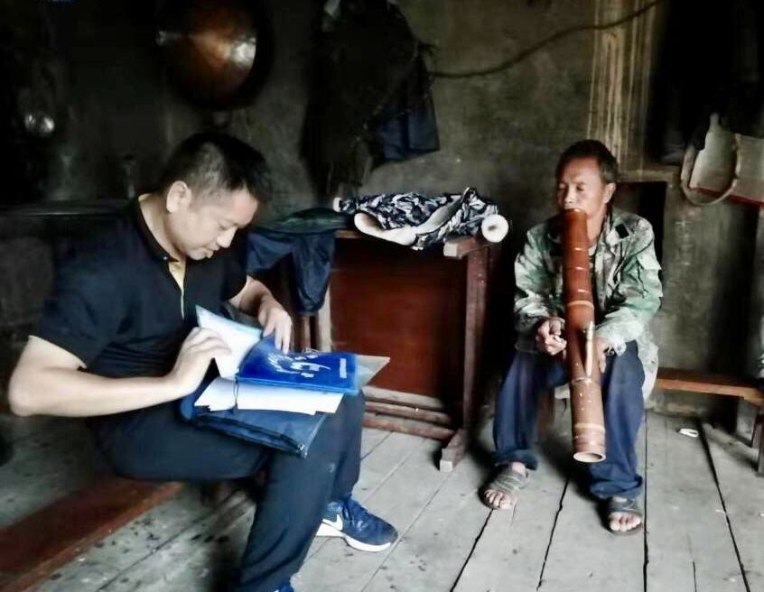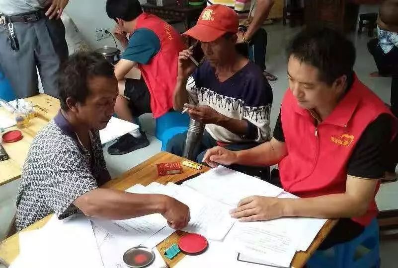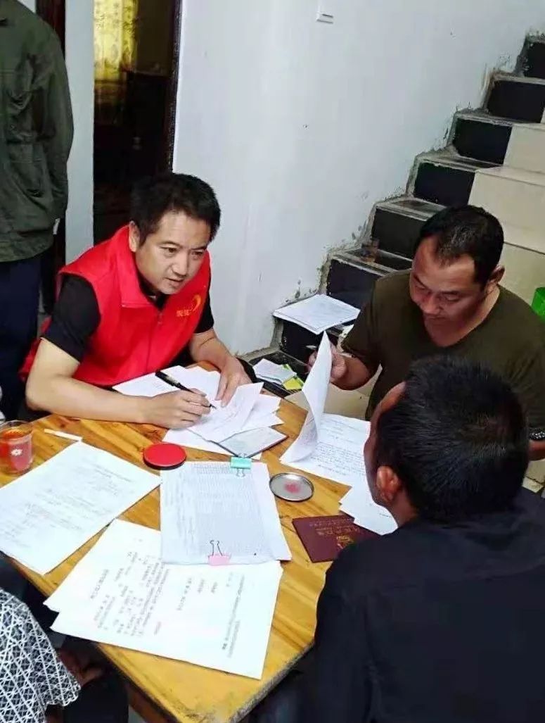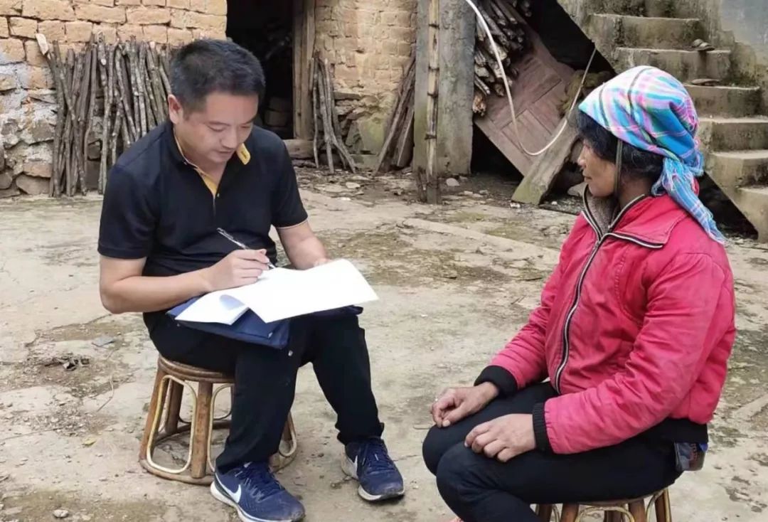 吳志宏(右)在核查建檔立卡貧困戶信息