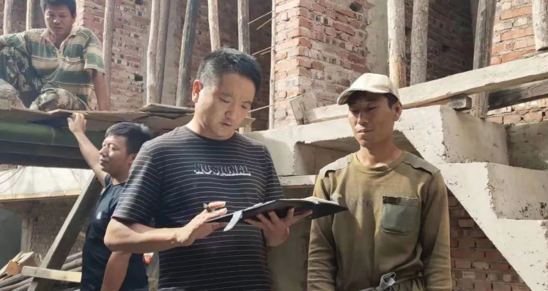 吳志宏(左)入戶了解建檔立卡貧困戶家庭情況