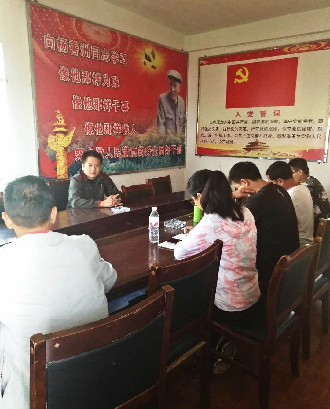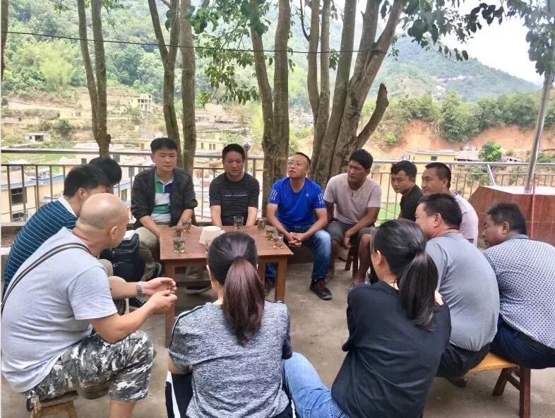 吳志宏(正面者)與駐村扶貧工作隊員座談交流幫扶工作