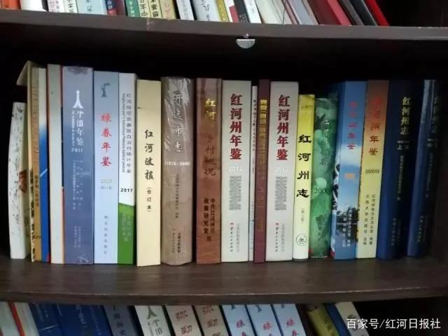 吳志宏辦公桌對面的書柜里,擺放著一本本《紅河州年鑒》、13縣市的年鑒等多類書籍。“他先后參與了紅河州第一、第二輪志書的編纂工作。”州史志辦黨史資料科科長王晉云隨手拿起了第一輪州志的第7卷。這輪州志共有7卷,記載了紅河有文字記載以來至1978年的浩瀚歷史事件,第二輪記載的是1978年至2015年的紅河歷史事件,共3卷。只見志書上布滿密密麻麻的蠅頭小字,每卷最少500頁。在這兩輪志書的編纂過程中,吳志宏任《附錄》主編、編纂人員、校對。