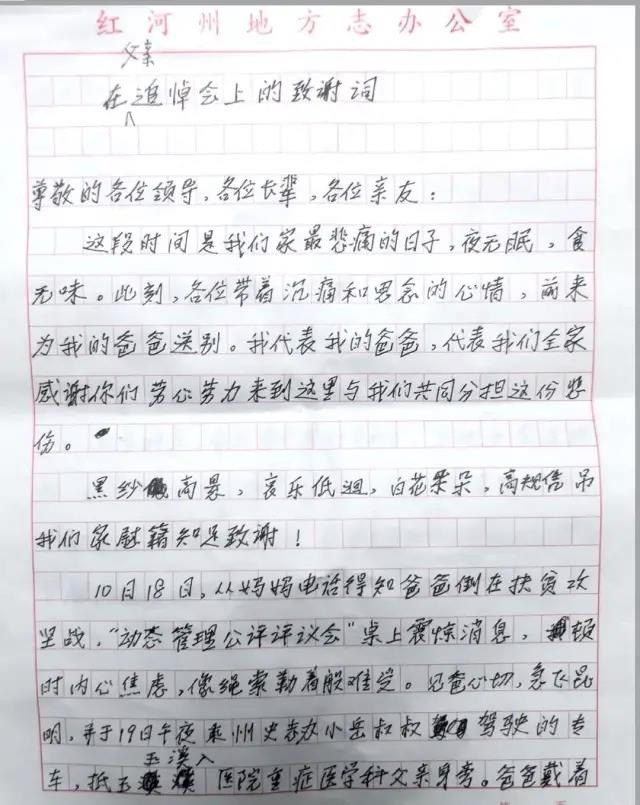 “爸爸沒(méi)走,爸爸的眼睛在觀察世界……爸爸我告訴你,你的器官至少能救活三條人命,三條鮮活的生命等于救了三個(gè)家庭。爸爸你平凡而偉大,我永遠(yuǎn)做你的兒子!爸爸你聽(tīng)見(jiàn)了嗎?”在已故扶貧干部吳志宏的追悼會(huì)上,他的兒子親筆寫下悼詞,以告慰父親在天之靈。
