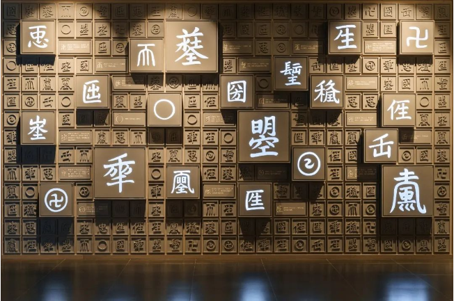 ▲河南洛陽(yáng)隋唐洛陽(yáng)城國(guó)家遺址公園明堂遺址內(nèi)部的文字墻。(圖片來源:視覺中國(guó))