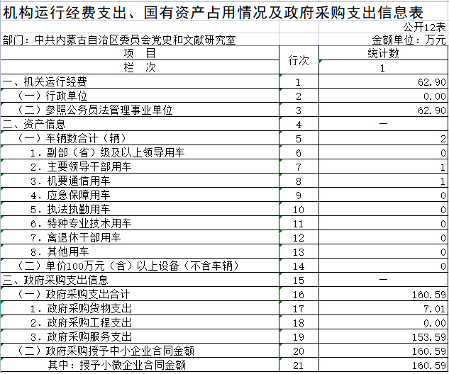 2022年度中共內(nèi)蒙古自治區(qū)委員會(huì)黨史和文獻(xiàn)研究室部門決算公開
